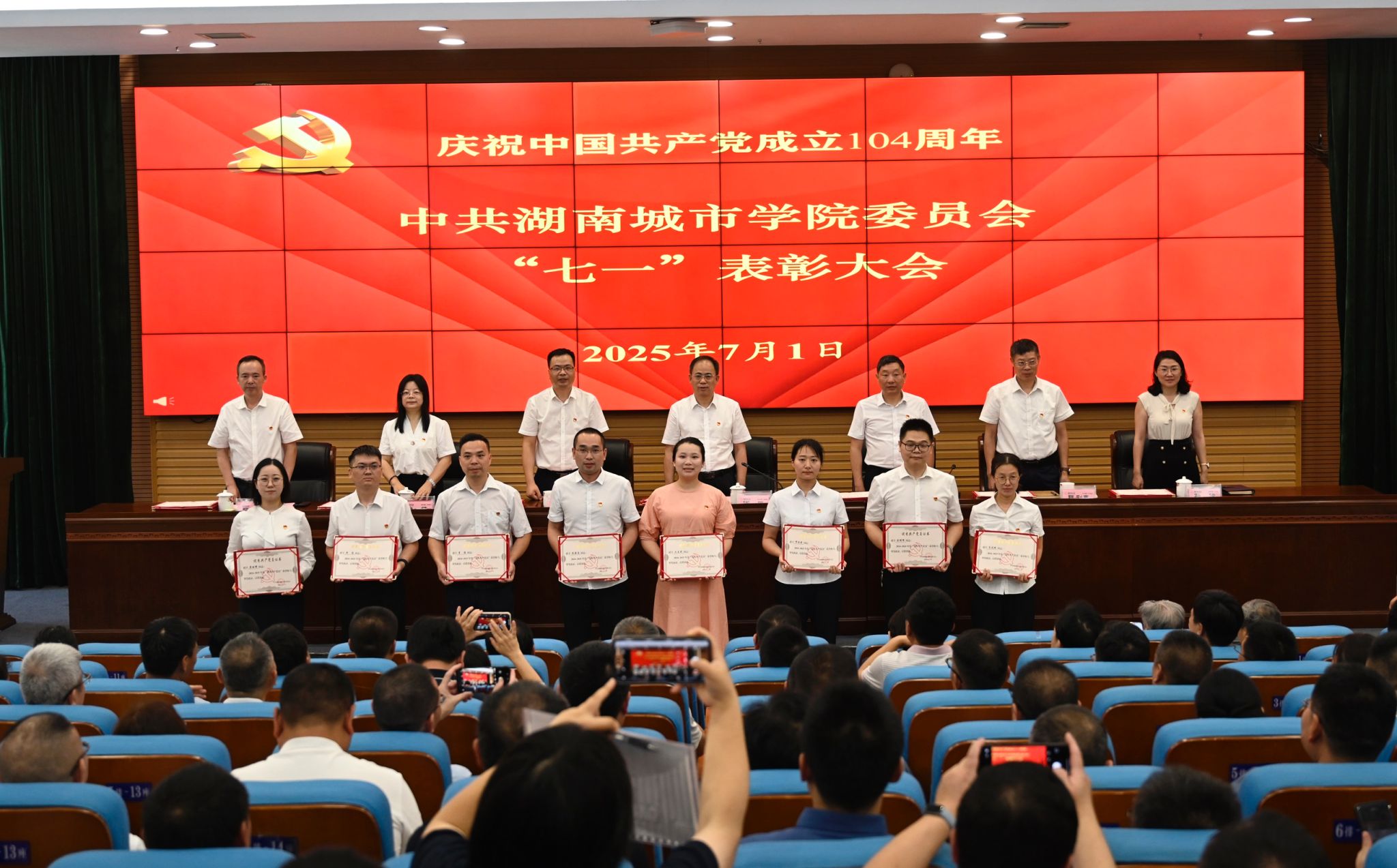 本网讯(通讯员 陈艳姣)为庆祝中国共产党成立104周年,表彰先进典型,凝聚奋进力量,7月1日上午,学校举行2025年“七一”表彰大会暨“光荣在党50年”纪念章颁发仪式,在家的校领导出席大会。会议由党委副书记袁志成主持。