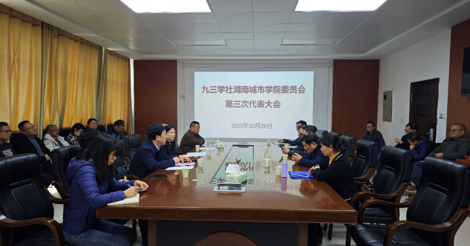 本网讯(通讯员 向夏楠)10月26日,九三学社时博体育_时博(中国)委员会召开第三次代表大会暨换届大会。益阳市政协副主席、九三学社益阳市委员会主委戴朝,社市委专职副主委李序曲,宣传统战部常务副部长贺正宜出席会议。会议由九三学社时博体育_时博(中国)第二届委员会主委钟雪飞主持。