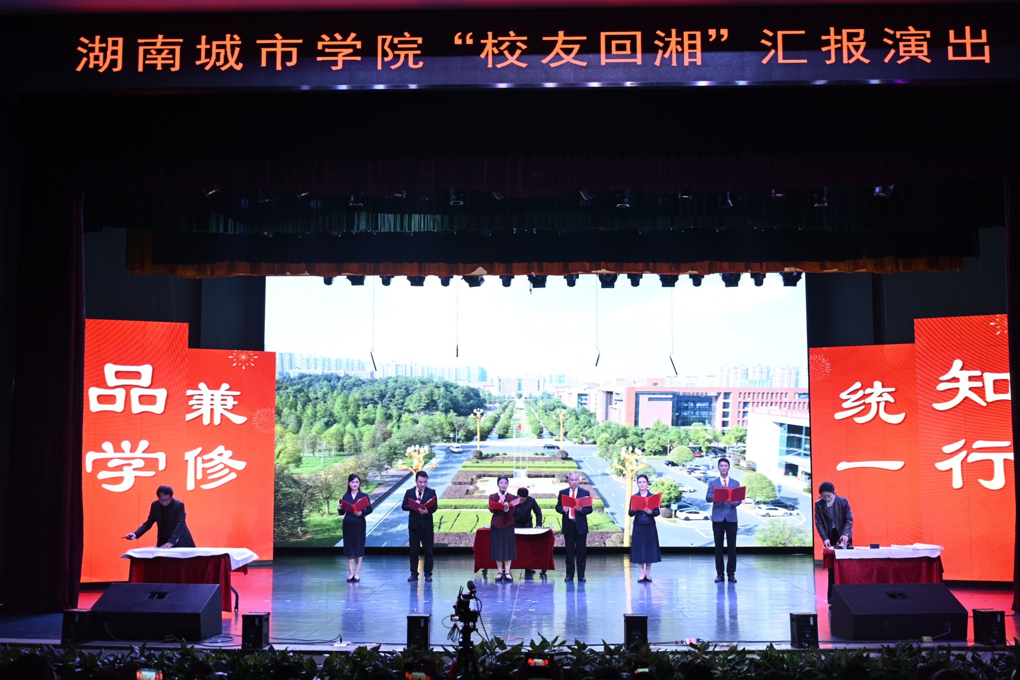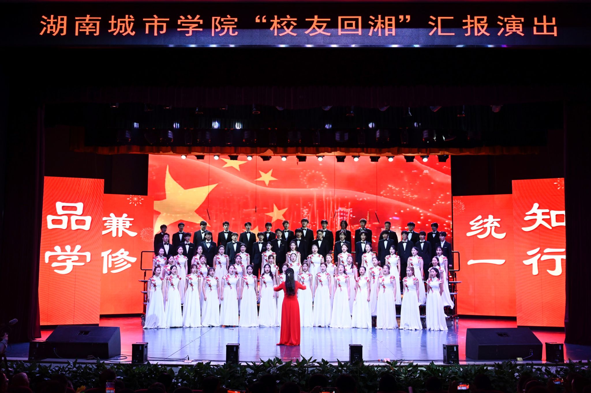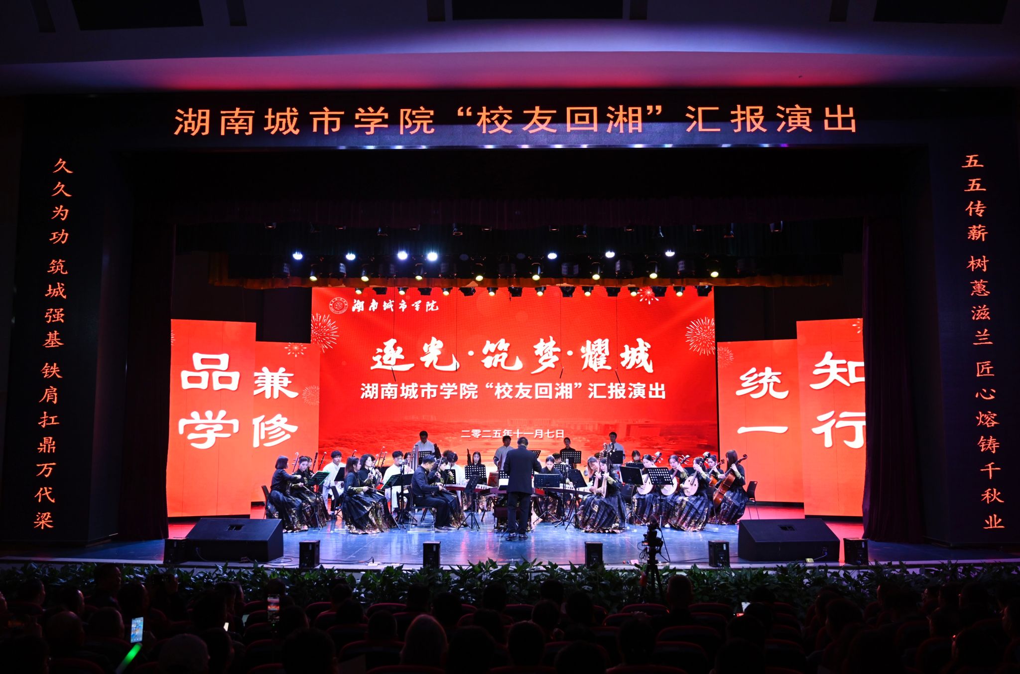 本网讯(通讯员 周贵湘 摄影 程强)11月7日晚,“逐光•筑梦•耀城”时博体育_时博(中国)“校友回湘”汇报演出在音乐厅精彩开演,全体在家校领导、嘉宾、校友代表及师生400余人齐聚一堂,共赴这场融合爱校情怀与艺术魅力的视觉盛宴。
