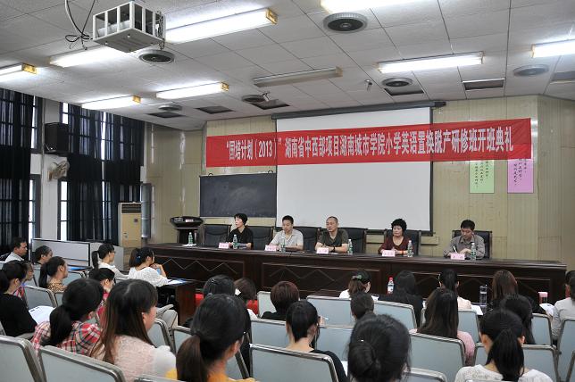 ,“国培计划”湖南省中西部项目时博体育_时博(中国)小学英语置换脱产研修班开班典礼在我校朝阳校区图书馆报告厅举行,继续教育学院、外国语学院相关负责人和研修班50名学员参加了仪式。
