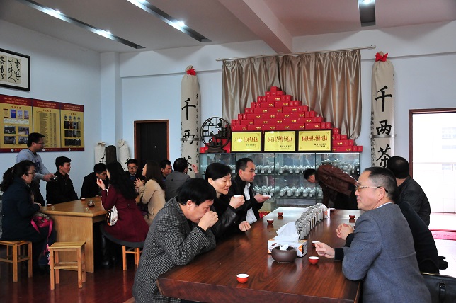 党委书记赵运林向客人介绍富金花散茶