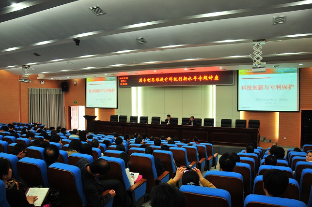 (本网讯)326日下午,省知识产权局党组书记、局长,中南大学知识产权研究院院长陈仲伯博士一行来我校指导工作并做了题为“科技创新与专利保护”的学术讲座。李建华校长主持了会议,汤放华副校长,省知识产权局人事处何萍处长,益阳市科技局杨耀武局长、潘访华副局长出席了会议。市科技局全体机关干部及我校师生近200人参加了报告会。