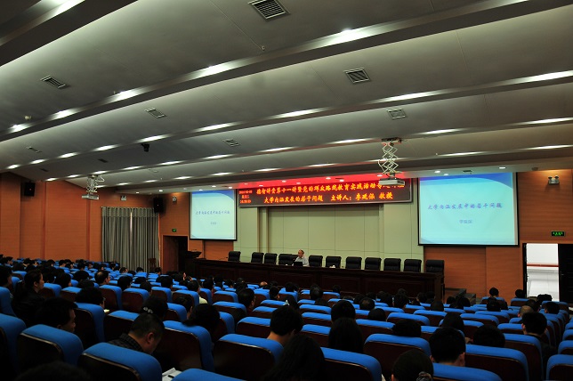 (本网讯)为了更好地推进我校党的群众路线教育实践活动的深入开展,认真发现、深入思考并切实解决学校发展过程中的实际问题和深层次矛盾,48日下午,学校邀请中山大学原党委书记、中央第一批党的群众路线教育实践活动第42督导组组长李延保教授为我校师生做了题为《大学内涵发展中的若干问题》的专题报告,报告会由学校党委书记赵运林教授主持,省教育厅组织部刘宏秋部长,在家的校领导、副科级以上干部,党总支部、直属党支部委员,教工党支部书记,学生党支部书记,马克思主义学院全体教师参加。