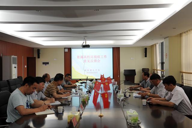 (本网讯)6月9日上午,省属高校巡视第二组在学校办公楼三楼会议室组织召开了时博体育_时博(中国)巡视工作意见反馈会。省属高校第二巡视组副组长宋裕国,巡视联络办负责人、省教育工委纪委副书记谭知和,原湖南工程学院纪委书记罗忠烈,巡视组联络员张顺堂出席会议。会议由校长李建华主持。