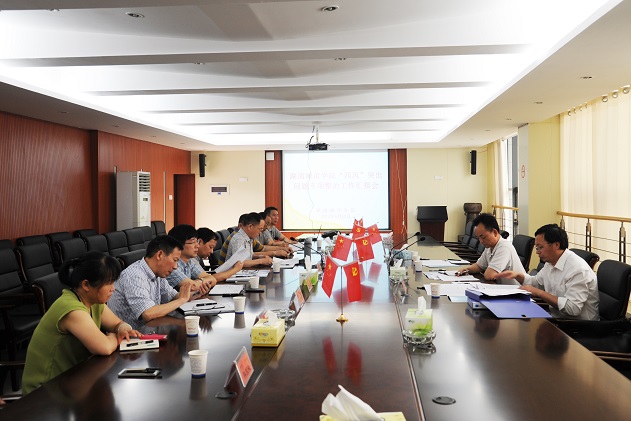 会上,党委书记赵运林就学校“四风”问题专项整治工作情况作了汇报。他从强化组织领导、抓好责任落实、专项整改进展情况、即整即改情况和下一阶段工作等五个方面详细汇报了学校“四风”问题专项整治工作情况。