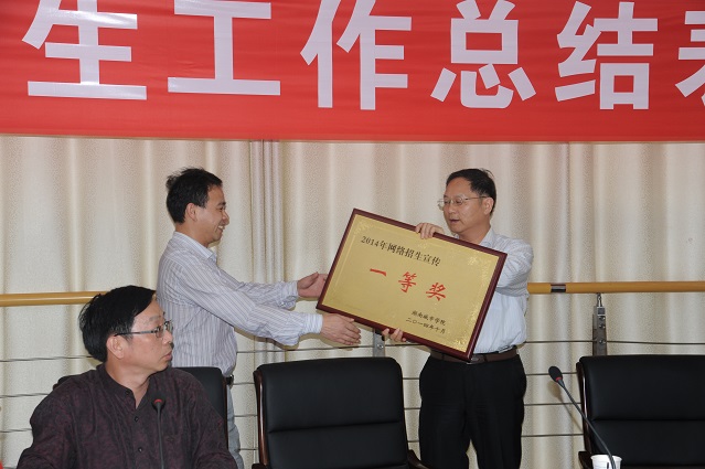 会上,招生就业处副处长郭太平作了学校2014年招生工作总结汇报,文瑞明宣读了《关于表彰时博体育_时博(中国)2014年网络招生宣传先进集体的决定》、《关于时博体育_时博(中国)2014年新生报到率奖励的决定》。