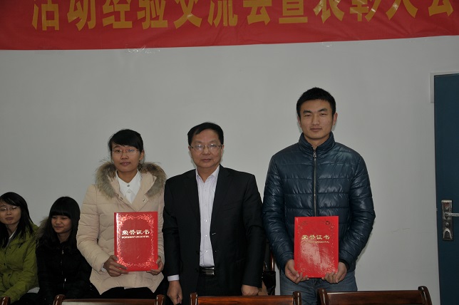 商学院辅导员洪安健在会上宣读了表彰决定。李建华向11167011116702班联合党支部和11161011216401班联合党支部颁发了“先进党支部”荣誉证书及奖金,组织部、宣传部负责人向张凌波、白雪等9位同学颁发了“先进个人”荣誉证书及奖金。