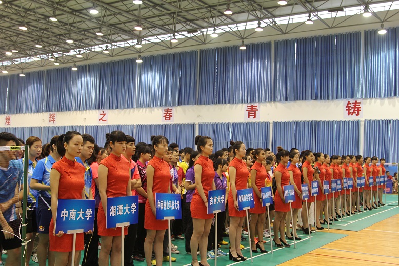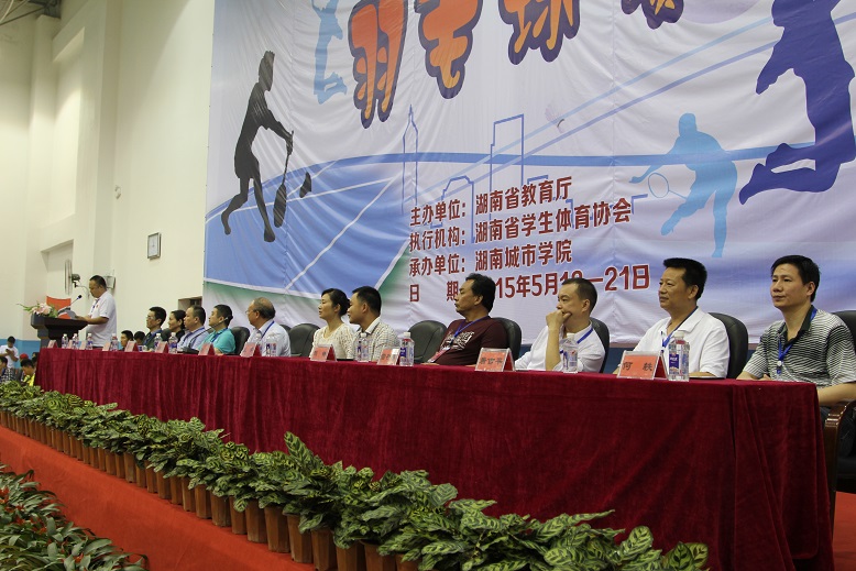 上午,2015年湖南省大学生羽毛球比赛在我校羽毛球馆拉开帷幕。湖南省学生体育协会秘书长潘洪飚、副秘书长何建伟以及比赛仲裁委员、比赛技术代表、裁判员、教练员、领队以及运动员出席开幕式。