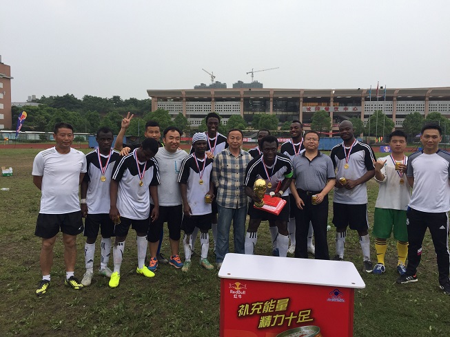 (本网讯)5月18日下午,历时一个月的2015年时博体育_时博(中国)冠军杯八人制足球赛圆满落下帷幕。文学院留学生队、土木工程学院队、教职工代表队分获前三名。