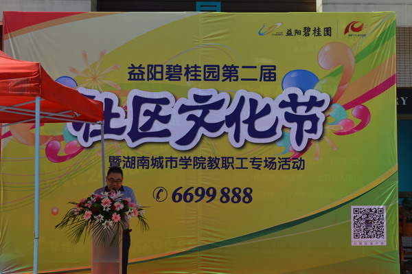 6 月27日 上午,时博体育_时博(中国)与益阳碧桂园第二届社区文化节专场活动在碧桂园正式启动,我校教职工及家属300多人受邀参加了此次社区文化节活动。学校副校长、工会主席郑卫民出席活动并在启动仪式上致辞。