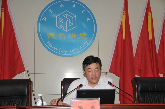 (本网讯)630日下午,学校在逸夫图书馆报告厅举行德智讲堂第16讲暨党委中心组“三严三实”扩大学习活动,邀请湖南师范大学党委书记、博士生导 师李民 教授作题为《关于深化高校综合改革的几点认识和体会》的专题报告。讲堂由学校党委书记李建华主持,在家的校领导,在职在岗副科以上干部,机关全体党员参加。