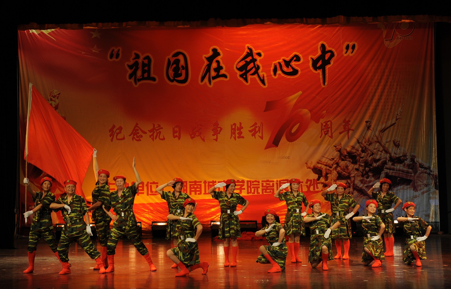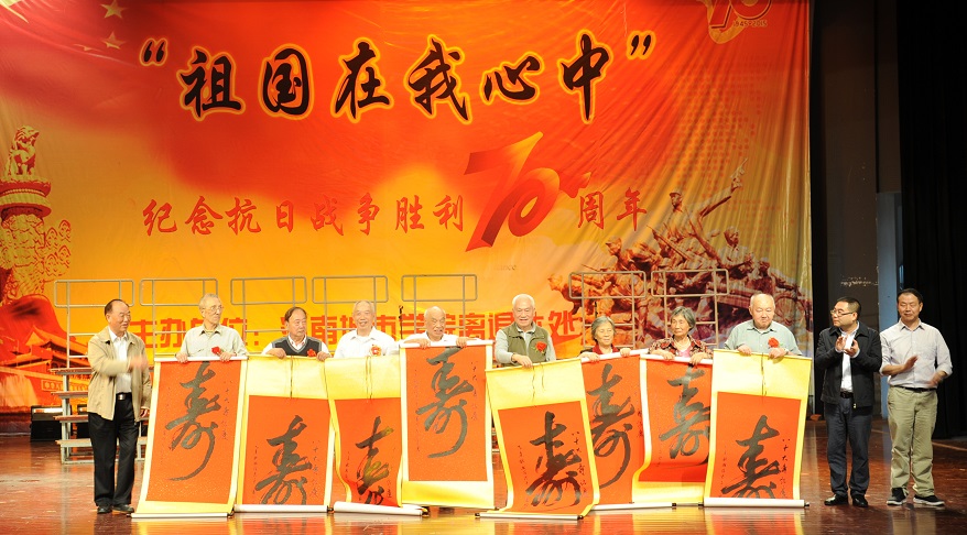 (本网讯)蟋蟀催寒服,茱萸滴露房。 1021,正值重阳佳节,我校在音乐学院演奏厅隆重举办“庆祝第三个法定老年节暨‘祖国在我心中’:纪念抗日战争胜利70周年”演出活动。全体离退休教职工盛装参与了这个属于他们的节日,部分在职教职工也为离退休老同志送去了文艺节目。
