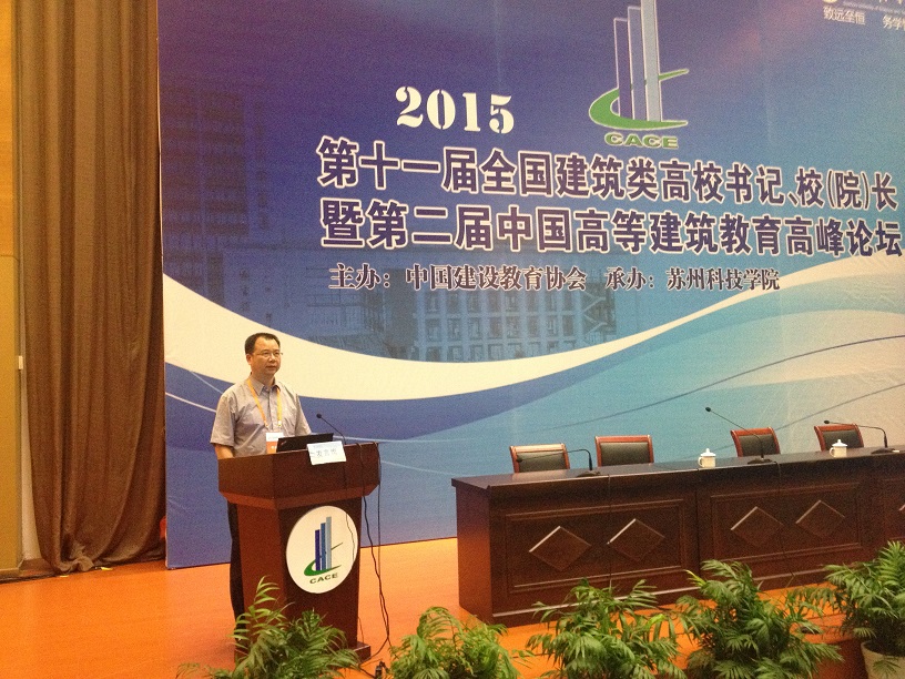 本届论坛由中国建设教育协会主办,苏州科技学院承办,论坛主题为“新常态下高等建筑教育发展”。中国建设教育协会副理事长兼秘书长朱光、住房与城乡建设部人事教育司处长高延伟、苏州市人民政府副市长王鸿声、江苏省教育厅高教处副处长徐萍、江苏省住房与城乡建设厅人事教育处副处长戴登军,及来自全国28家单位72名代表出席了开幕式。