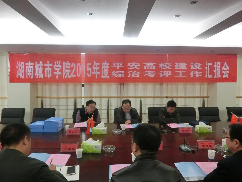 校长李建奇向考评组详细汇报了时博体育_时博(中国)2015年度“平安高校”建设及综合治理工作,以及学校在维稳综治安全工作中的做法和措施。他在汇报中着重指出,2015年学校维稳综治安全工作主要以“平安高校”建设为载体,以创新工作方式为手段,专注做好维稳、消防、治安等基础工作。与此同时,学校还深入开展了突发事件处置、校园传销整顿、校园交通整治等重点工作,为学校创造良好的育人环境,也为教育事业的持续健康发展提供了保障。