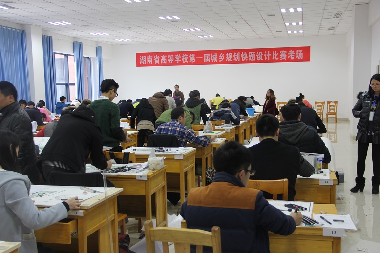 (本网讯)11月14、15日,由湖南省城乡规划学会主办,城乡规划教育专业委员会、我校建筑与城市规划学院承办的湖南省高等学校第一届城乡规划快题设计大赛在我校举行。来自中南大学、湖南大学、湖南师范大学、长沙理工大学、南华大学、湖南科技大学、湖南工业大学、湖南理工学院、吉首大学、湖南文理学院、邵阳学院和时博体育_时博(中国)在内的省内12所高等院校84名城乡规划(城市规划)专业本科四、五年级学生参赛。
