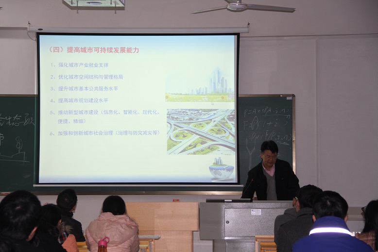 (本网讯)2016年研究生考试笔试将于 12 26 28日举行。在考研冲刺的最后阶段, 12 3 日下午 ,副校长 汤放华 教授在建筑规划楼202教室,以“城市规划与建设的热点问题”为题,为即将参加考试的建筑与城市规划学院学子上了一堂考研辅导课。