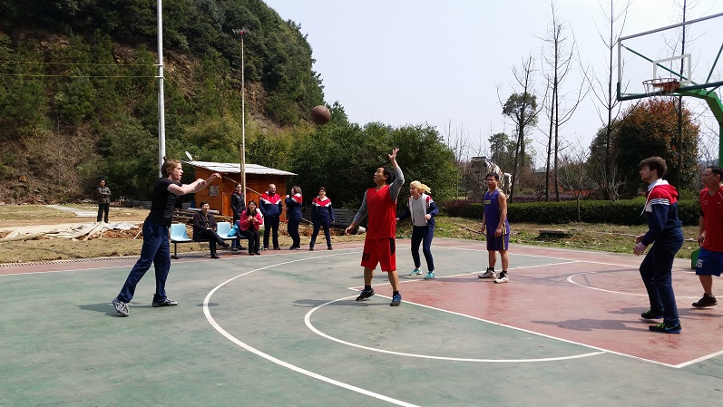 (本网讯)3 月 11 日 ,国际交流处组织我校部分外籍教师走出校园来到鱼形山水库举行户外活动。外教参观了鱼形山水库周围并与益阳东部新区管委会工作人员进行了篮球友谊赛。党委副书记、副校长龚卫明以及国际交流处全体人员参加了此次户外活动并观看了篮球赛。