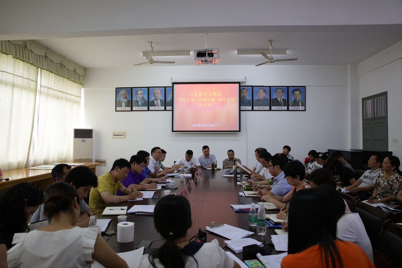 (本网讯)6月14日下午,党委书记罗成翼率人事处、应用与创新中心、教务处等部门相关负责人出席了马克思主义学院“转型发展、内涵发展、特色发展”大讨论活动。马克思主义学院全体教师参加了专题讨论。