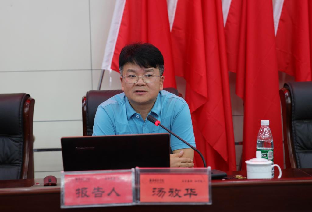 (本网讯)6月29日晚,我校在图书馆报告厅召开“三个发展”研修班第二场辅导报告会。副校长汤放华作了题为“中央城市工作会议精神解读与我校学科建设思考”的报告,纪委书记姚春梅就地方本科院校的转型与发展作了深入剖析。全体校领导,教授、博士、副处级以上干部,教务处、科学研究与学科建设处工作人员参加了报告会。会议由副校长郑卫民主持。