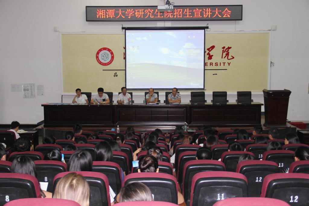 本次宣讲会是由副校长何振教授联系和引进。湘潭大学还分学院在我校土木工程学院、数学与计算科学学院、化学与环境工程学院做了单独考研宣讲。今后,学校将陆续引进其他研究生单位来我校开展考研宣讲会。