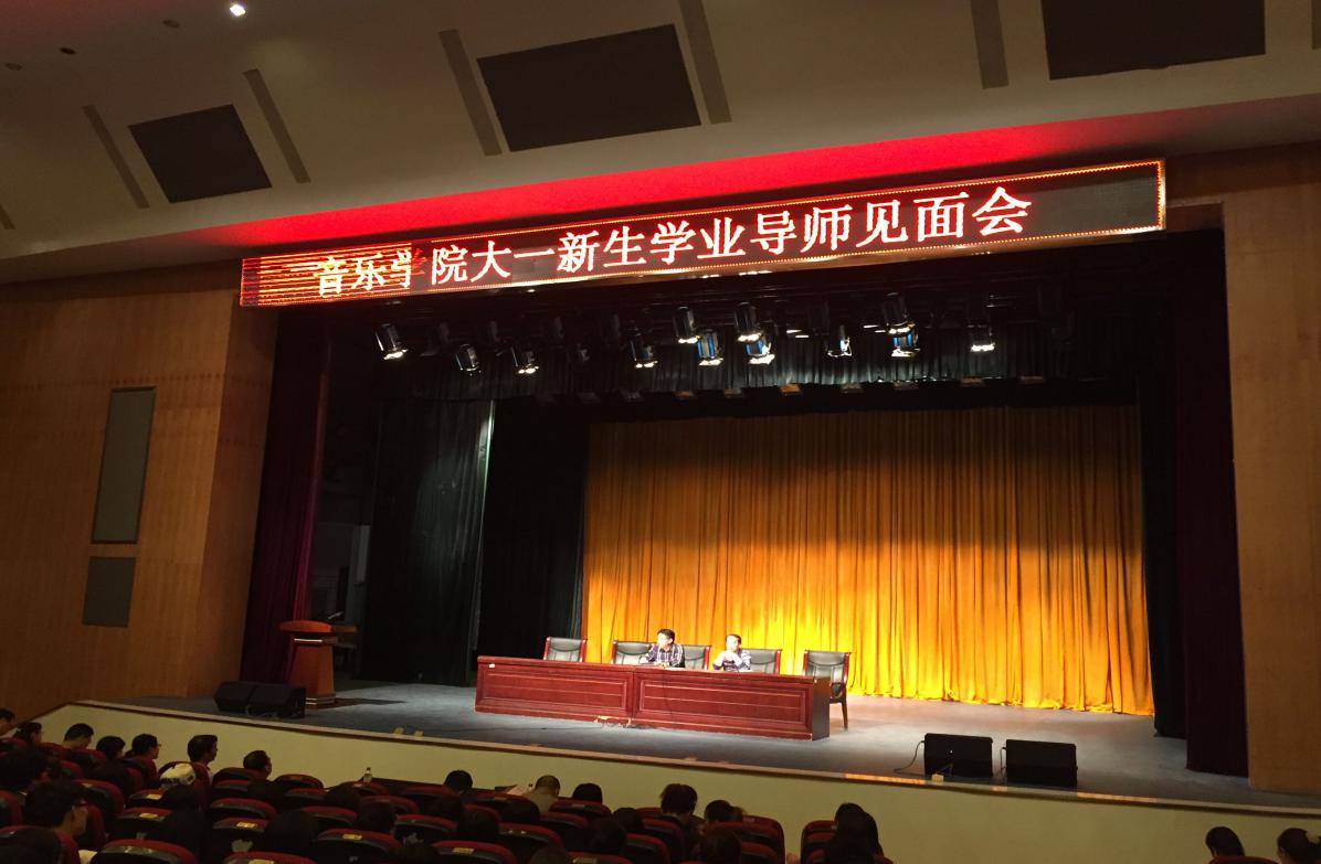 (本网讯)“学业导师、学术讲座、家院微信群”,这些写进党代会报告、“十三五”规划和“三风三力”实施方案中的举措,正在音乐学院变成现实。学风根本转变,主导在教师,收益是学生,重在教学相长,师生互动。为加强师生间的沟通与交流,帮助大学新生尽快融入大学学习生活,实现该院学风根本好转,10月18日下午,音乐学院2016级学生“学业导师制”师生见面会在音乐厅隆重举行。该院领导班子、全体教职工及2016级学生参加了此次见面会。