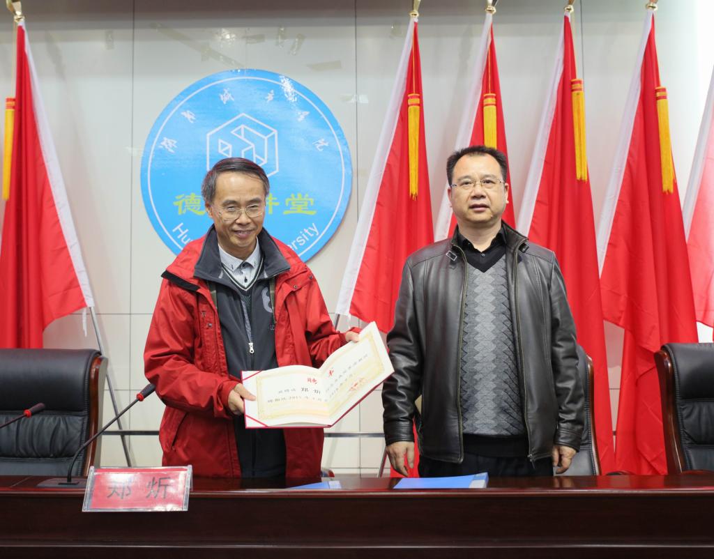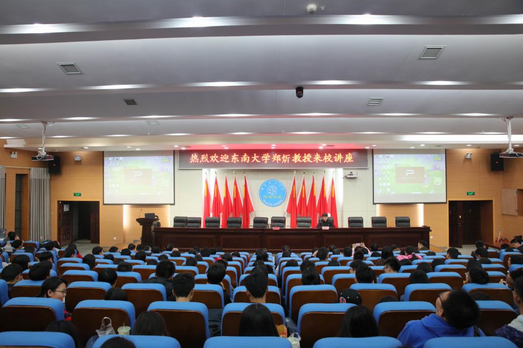 讲座之前,李建奇为郑炘教授授聘书,聘任郑炘教授为我校客座教授。郑卫民为郑炘教授佩戴了时博体育_时博(中国)校徽。郑炘表示非常荣幸成为时博体育_时博(中国)的一员,并将为学校的发展贡献自己的一份力量。