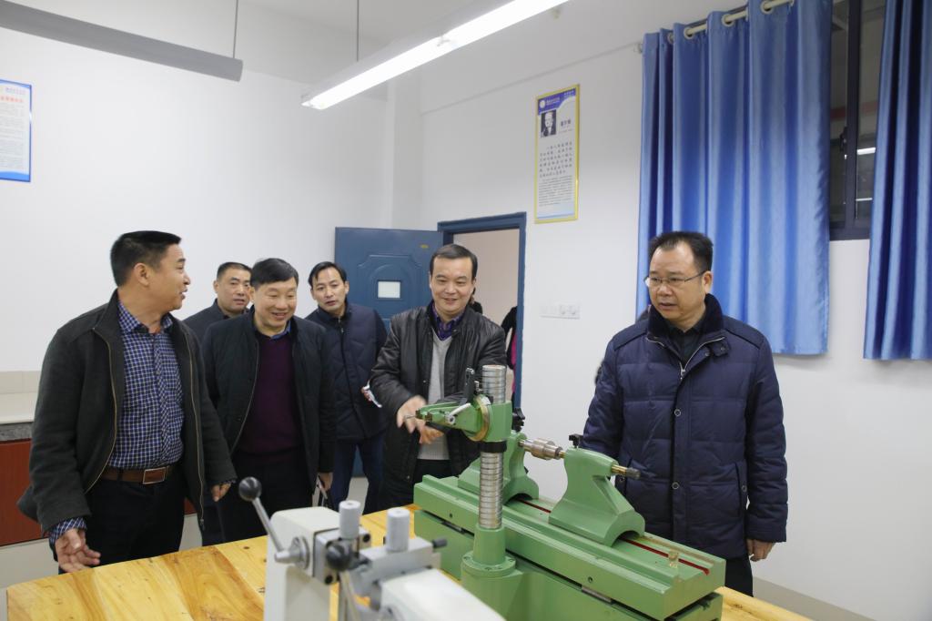 在机电工程学院负责人陪同下,李建奇、刘辉煌、雷存喜、谭献良一行实地参观了机电工程学院实训场地和设备,了解了该院设备的引进情况,并现场观摩了部分实验设备的使用。
