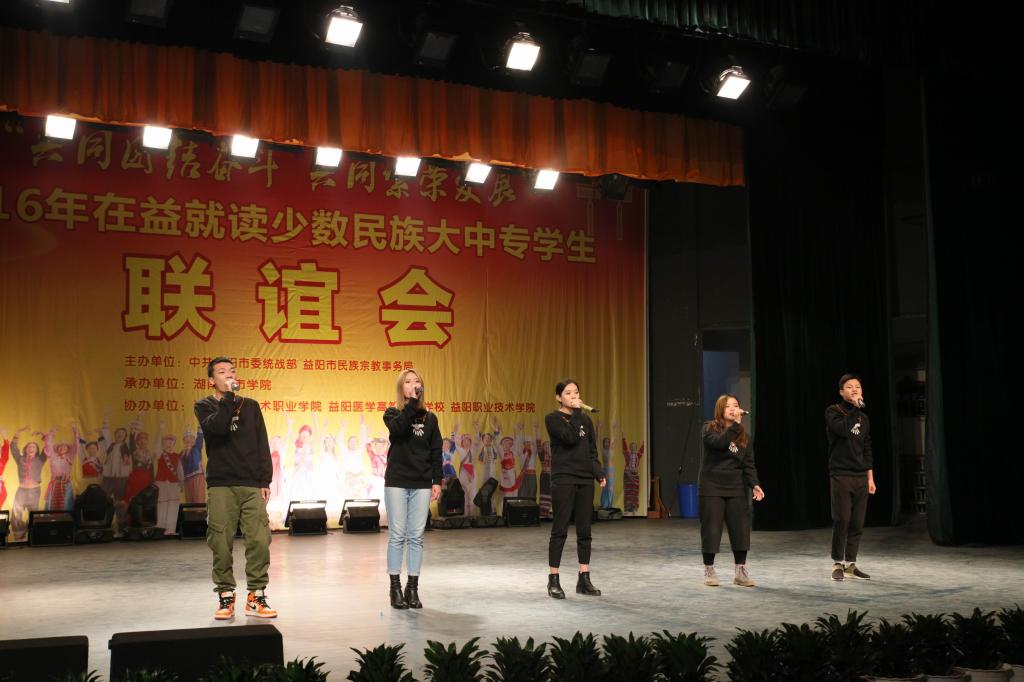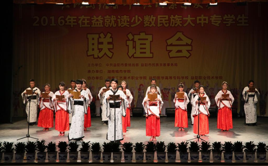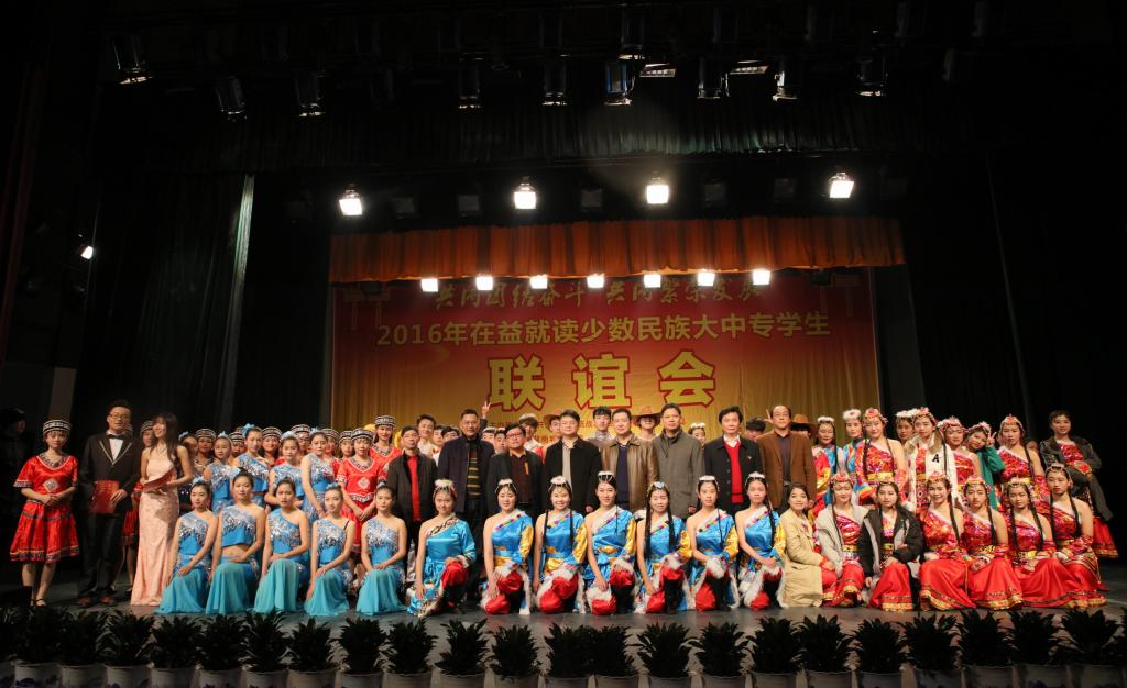 (本网讯)12月18日下午,2016年在益就读少数民族大中专学生联谊会在我校音乐厅隆重举行。联谊会由市委统战部、市民族宗教事务局主办,时博体育_时博(中国)承办,湖南工艺美术职业学院、益阳医学高等专科学校、益阳职业技术学院协办,主题为“共同团结奋斗 共同繁荣发展”。益阳市委宣传部、市委统战部、市民族宗教事务局、市公安局、市教育局、市文体广新局以及四所高校相关负责人出席联谊会。