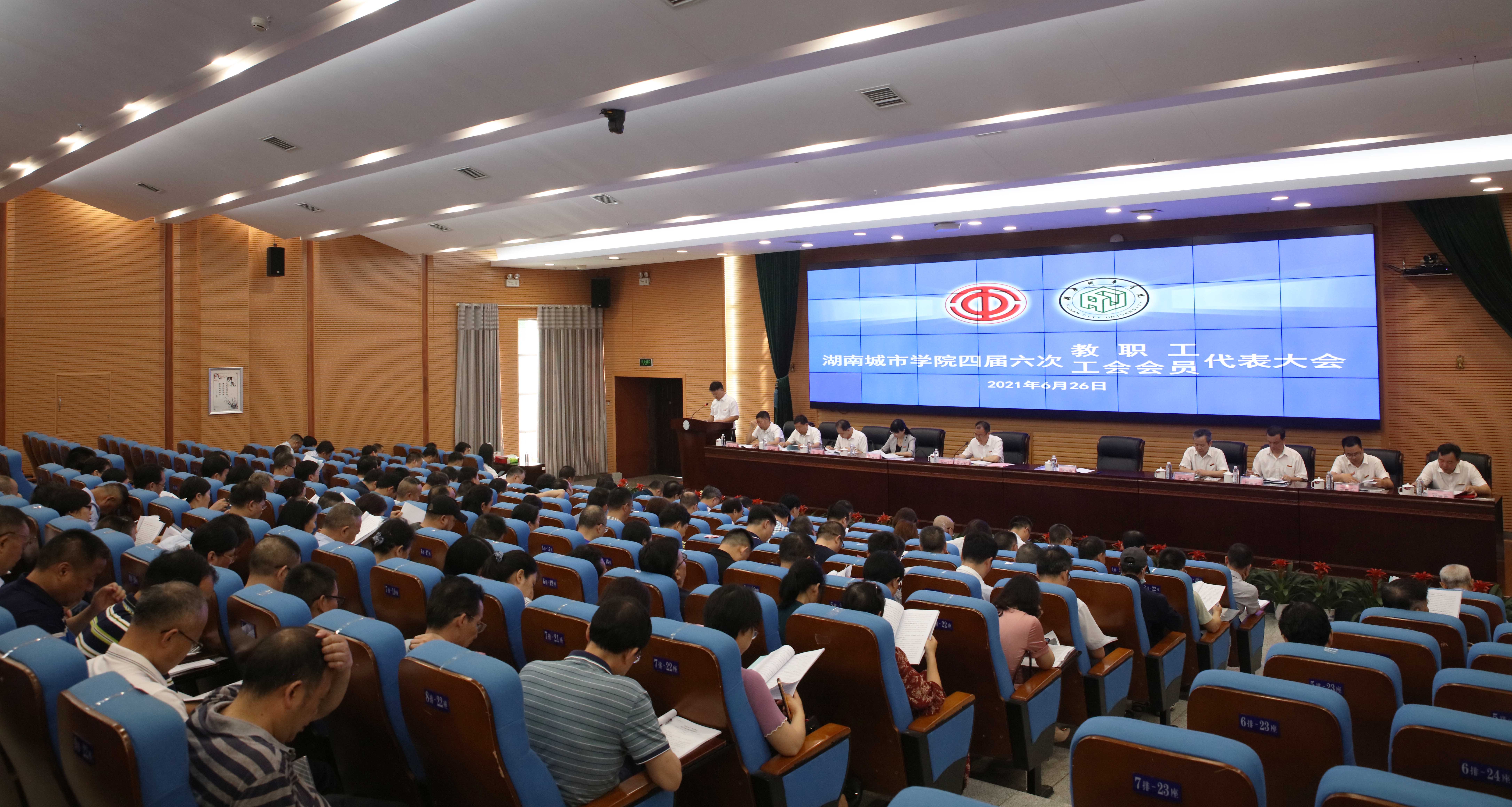 本网讯 2021年6月26日,时博体育_时博(中国)第四届六次教职工、工会会员代表大会在图书馆报告厅召开。135名正式代表以及列席代表、特邀代表出席会议。校领导李建奇、汤放华、何旭娟、夏宏宇、何振、雷存喜、谭献良、袁志成、陈列尊、吕贤军在主席台就座。大会由党委书记李建奇主持。