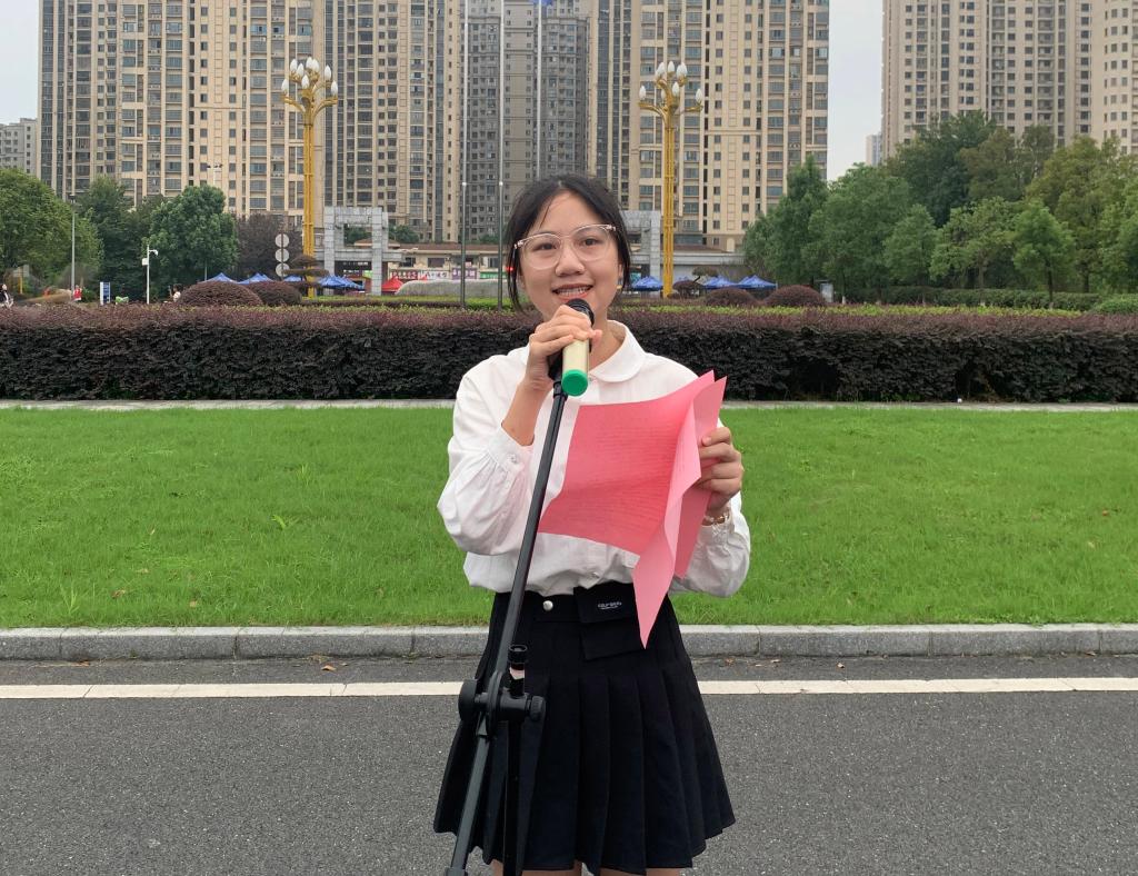 学生代表人文学院杨顺作“国旗下的演讲”,她以“以青春之我,圆百年之梦”为主题,号召新时代的城院青年脚踏实地,刻苦学习,为民族复兴铺路架桥,为祖国建设添砖加瓦,以青春之我,圆百年伟梦!