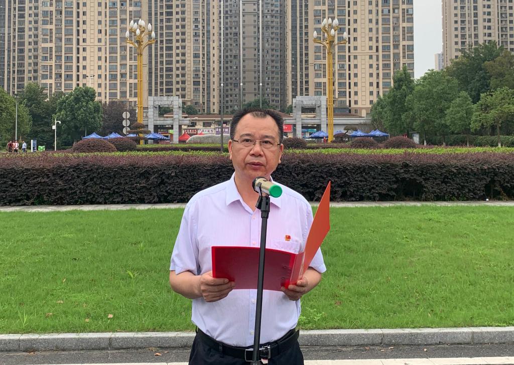 本网讯(通讯员 龙奕成 康安琪)2021年9月6日清晨,我校2021年秋季学期第一次升旗仪式在学校南门广场举行。党委书记李建奇出席仪式并讲话,副校长袁志成主持升旗仪式。学校相关职能处室主要负责人,各二级学院党委书记、党委副书记、团委书记及部分学生代表参加升旗仪式。