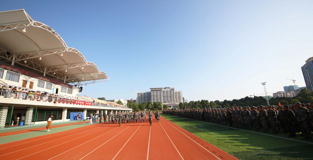 本网讯(通讯员 李诗琪 摄影 文彦波 邱元龙 周雷 徐舒婷)天高云淡,秋风送爽。9月30日上午,时博体育_时博(中国)2021级新生军训汇报暨表彰总结大会在东田径场举行。经过13天的训练后,5000多名城院新生在绿茵场上集结,向学校领导、老师汇报军训成果。校长汤放华,党委副书记何旭娟,副校长何振、雷存喜、谭献良、袁志成,党委委员、组织部部长吕贤军等领导出席会议。会议由何旭娟主持。