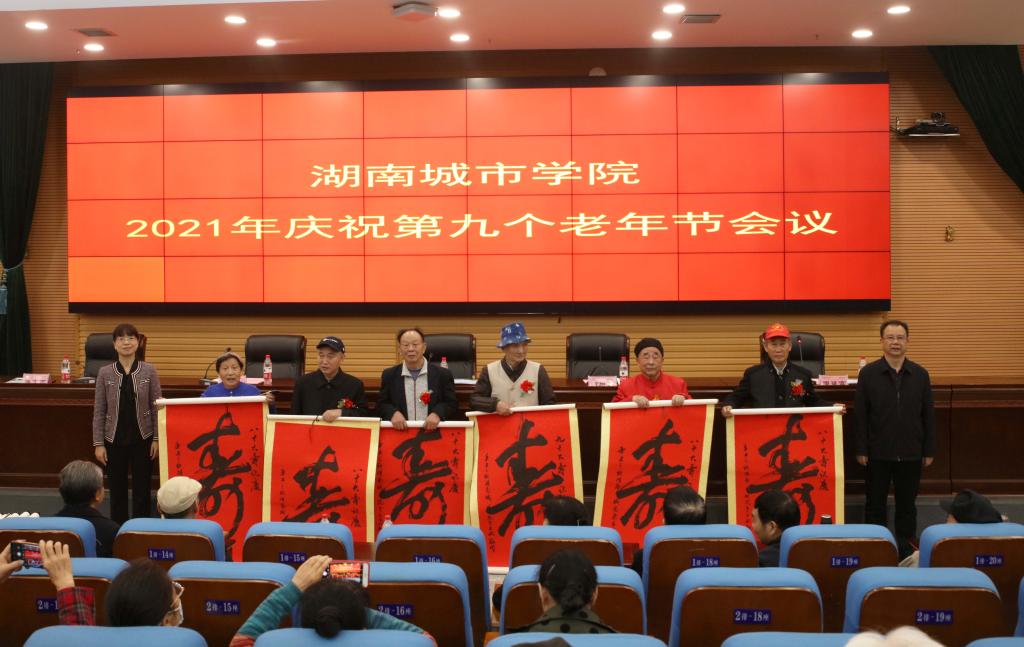 大会为今年16名省、市级荣誉获得者和41名校级荣誉获得者进行表彰, 给钻石婚金婚老同志赠送纪念照,给今年80、90岁寿星赠送“寿”字幅,表达了良好祝愿。