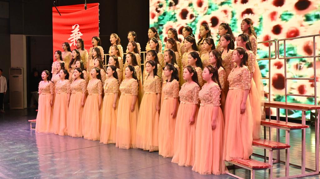 “都市的街巷,已灯影婆娑,社区暖暖流淌的欢乐……”合唱比赛在市政与测绘工程学院饱含深情演唱的《灯火里的中国》中悠扬开场。伴随着激情澎湃的节奏,《在灿烂的阳光下》《在太行山上》《万疆》《天耀中华》《祖国不会忘记》这些激昂的歌曲旋律久久飘荡在音乐厅上空。随后表演的《在希望的田野上》《不忘初心》《追寻》,抒发了对中国共产党的热爱和对美好生活的无限向往。《走进新时代》《走向复兴》《歌唱祖国》等歌曲的倾情演绎,表达了党和国家的深深祝福,台下不断挥动的国旗,展现了城院学子一片赤诚之心。艺术学院橙音合唱团表演的《怒吼吧黄河》,用热烈的呐喊和青春的鼓舞,带给现场观众最震撼人心的力量。最后,全场一起齐唱校歌《精英,从这里扬帆启程》,比赛徐徐落下帷幕。