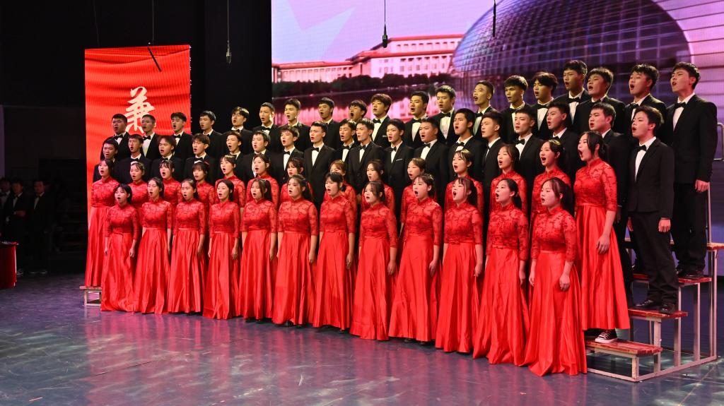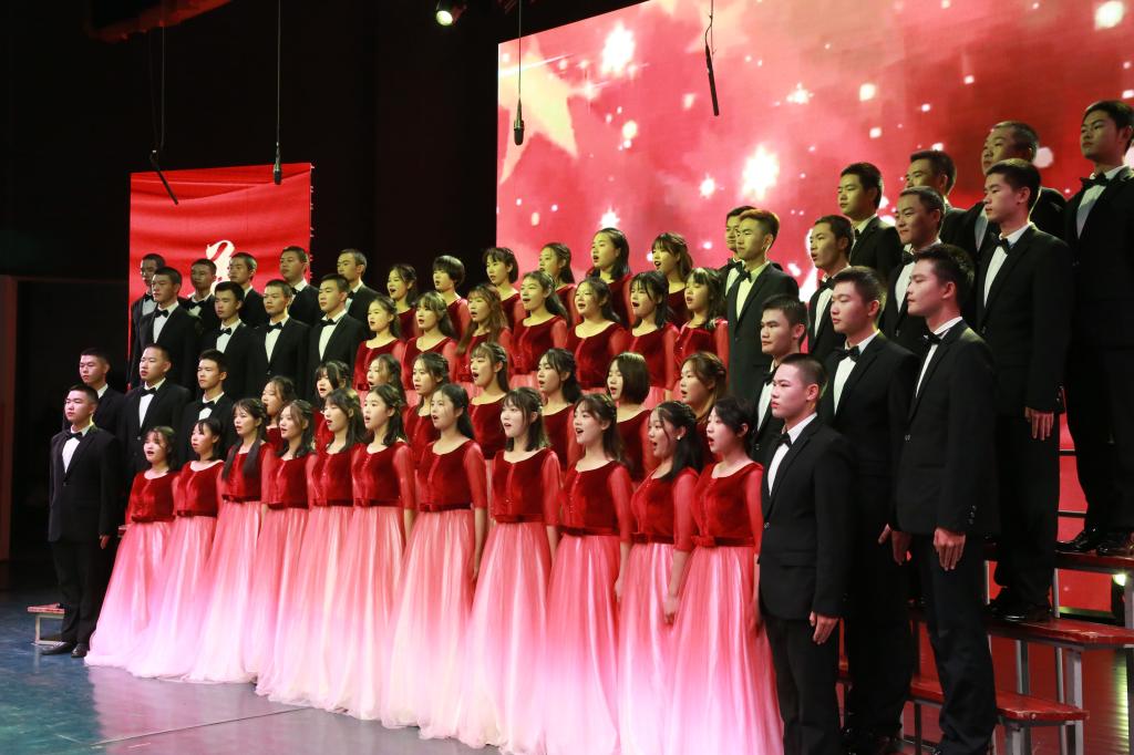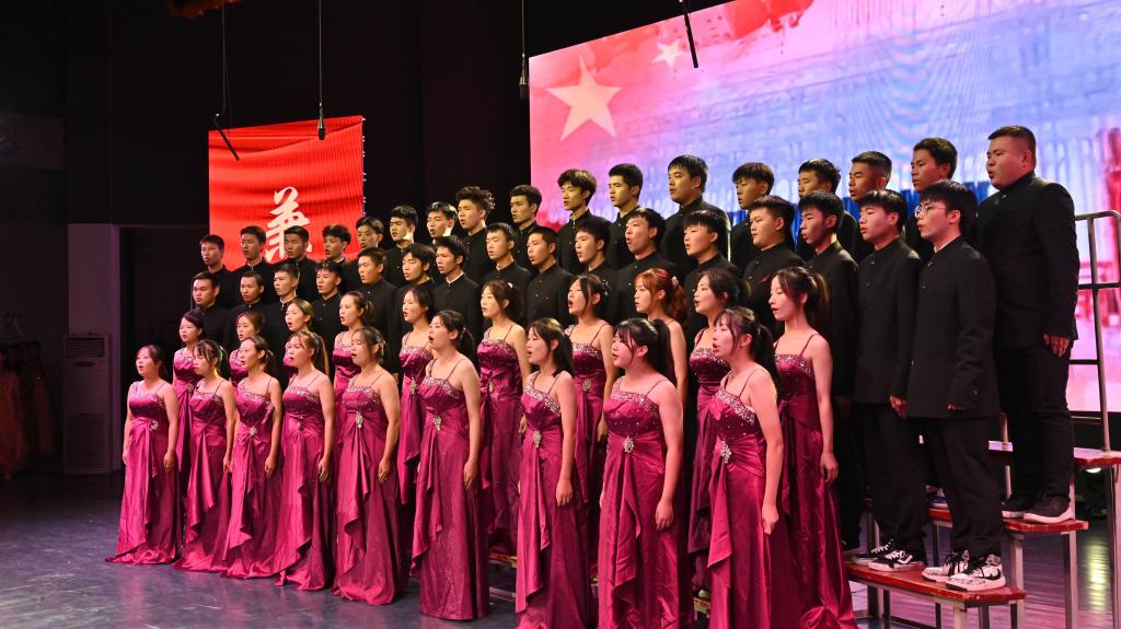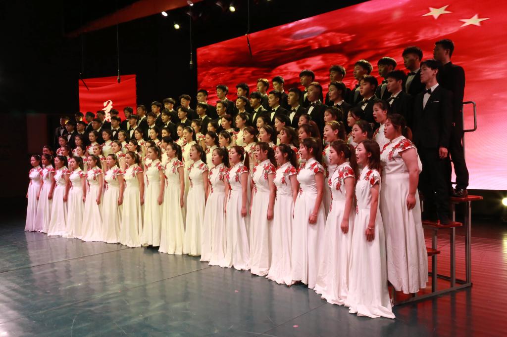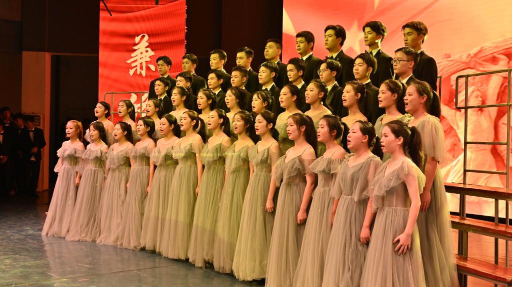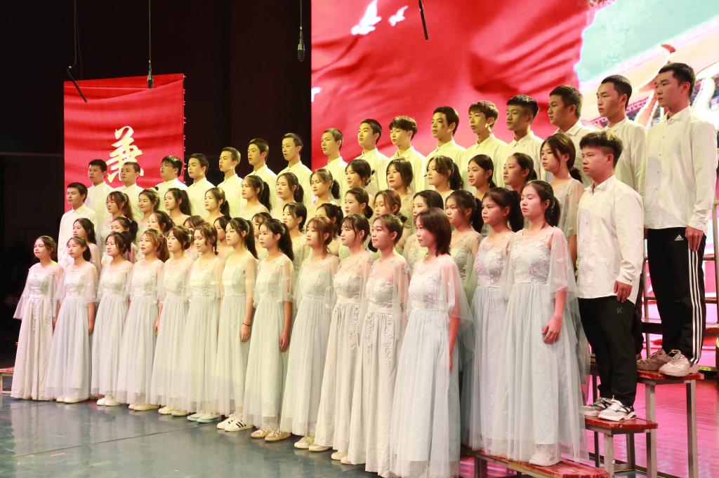 比赛中,13个二级学院学生组成的合唱队倾情献唱,参赛人员着装整齐、激情洋溢,用昂扬奋发的精神风貌表达了爱党爱国、同心奋进的城院情怀。一首首经典传唱的红色歌曲,唱出了他们对中国共产党的无限崇敬与热爱。台上热血沸腾,台下掌声雷动,现场高潮迭起、阵阵欢呼。