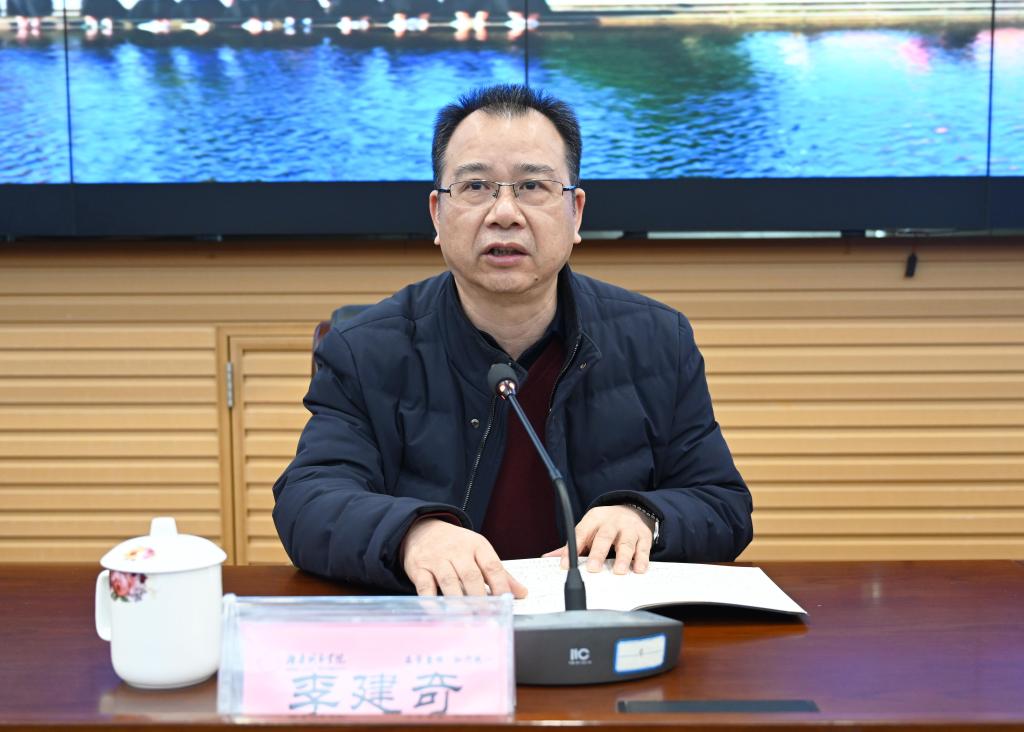 视频会议结束后,李建奇主持召开开学工作布置会,汤放华简要总结了我校2021年主要工作,并对新学期开学工作进行了全面部署。他指出,过去一年,学校获批新增硕士学位授权单位,科学擘画“十四五”发展新蓝图,全面推进党建工作走深走实,学科专业建设取得新突破,创新引领服务能力明显提升,综合改革进一步深化,幸福新城院建设取得新实效。汤放华表示,做好春季开学疫情防控工作是当前学校最紧迫、最重要的一项政治任务,要保持定力,持续做好常态下的校园疫情防控。要围绕教学工作、学生工作、后勤保障、安全保卫、巡视整改工作等方面,主动担当履职,努力开创新学期学校工作新局面,书写新时代城院发展新篇章!