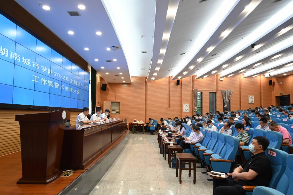 本网讯(供稿:纪委办公室)2022年6月1日上午,学校在图书馆报告厅召开2022年全面从严治党工作会议,深入学习贯彻习近平总书记重要讲话精神、赵乐际同志来湘调研讲话精神和十九届中央纪委六次全会、省十二届纪委二次全会以及2022年全省教育系统全面从严治党工作会议精神,回顾总结2021年学校全面从严治党工作情况,部署安排2022年全面从严治党重点工作。校党委书记李建奇出席会议并讲话,党委委员、纪委书记、省监委驻校监察专员陈列尊作纪检监察工作报告。会议由党委副书记、校长汤放华主持。