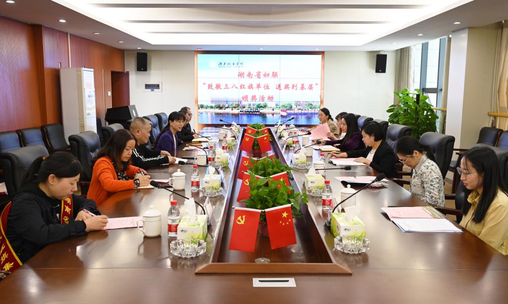 本网讯(记者/文彦波 通讯员/王锋娟)11月2日下午,省妇联副主席周荣一行来到时博体育_时博(中国)开展“致敬三八红旗手·送奖到基层”活动,为荣获湖南省“三八红旗集体”荣誉的马克思主义基本原理概论教研室颁奖。学校党委副书记何旭娟,校工会、马克思主义学院等单位相关负责人出席授奖仪式。