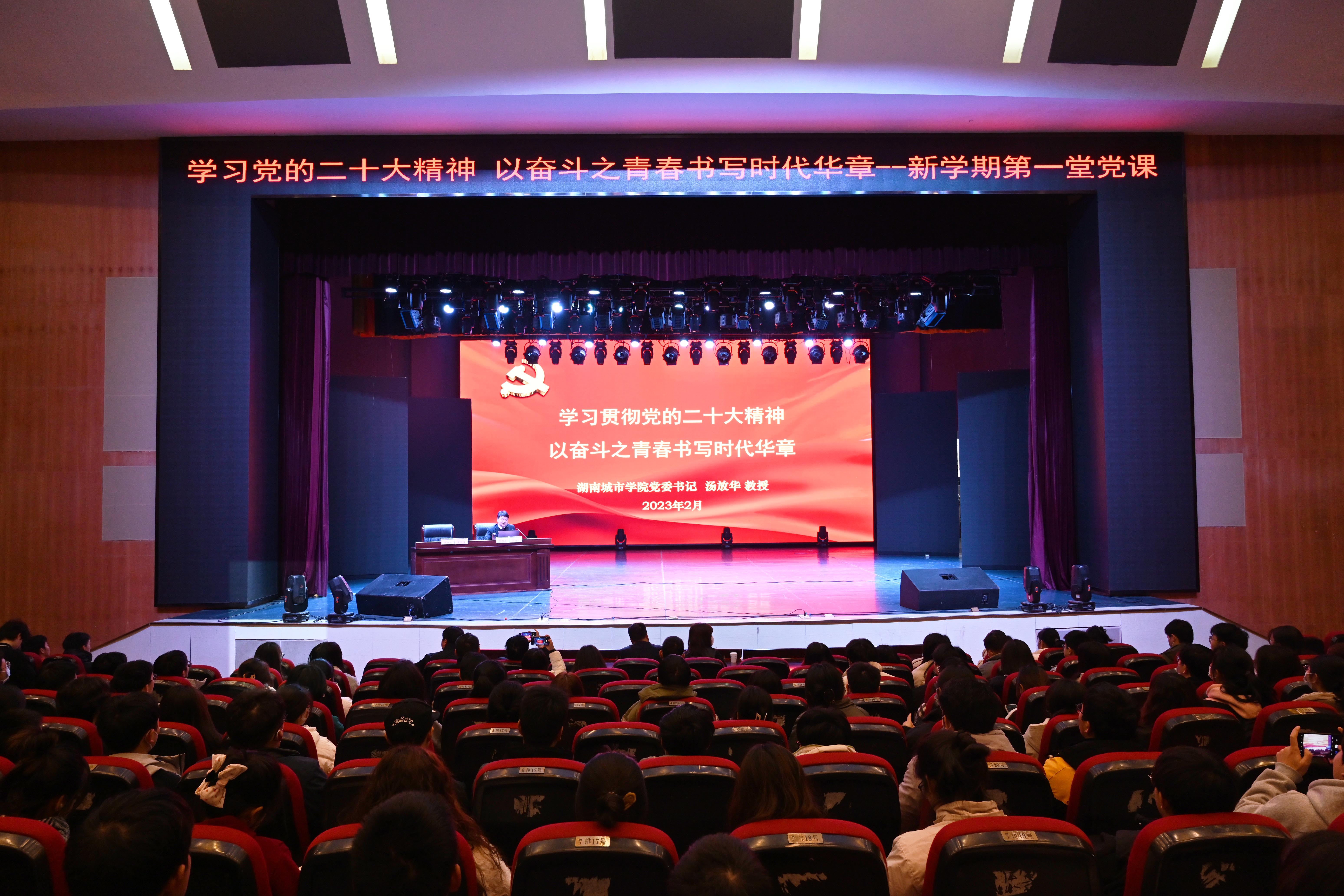 本网讯(记者 文彦波)“到边疆去,到农村去,到祖国最需要的地方去……”2月24日下午,时博体育_时博(中国)音乐厅内座无虚席、气氛热烈,学校党委书记汤放华为青年学子讲授了新学期“开学第一课”,近四百名青年学子聆听。副校长袁志成主持。