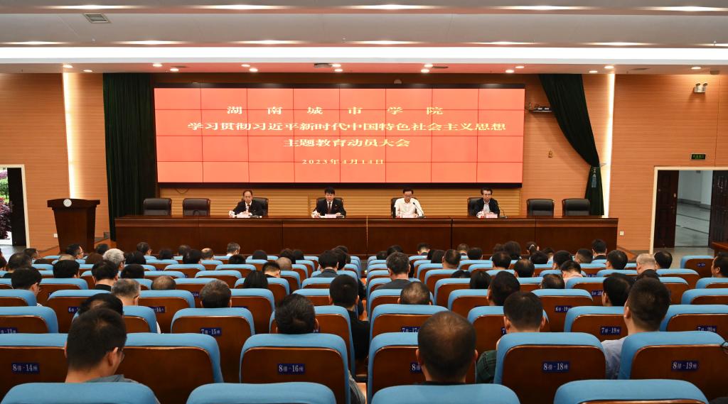 汤放华在动员讲话中就学校开展好学习贯彻习近平新时代中国特色社会主义思想主题教育提出五点意见:一要充分认识开展学习贯彻习近平新时代中国特色社会主义思想主题教育的重要意义。开展这次主题教育,是用习近平新时代中国特色社会主义思想武装全党的迫切需要,是推进新时代党的建设的迫切需要,是保持党同人民群众血肉联系的迫切需要,是实现党的二十大确定的目标任务的迫切需要。二要全面准确贯彻落实主题教育的部署要求。要把握好总要求,落实好根本任务,锚定具体目标,紧紧围绕立德树人的根本任务,将初心使命转化推进学校高质量发展,建设“五个新城院”,办人民满意大学的自觉行动。三要精准聚焦突出的问题。要坚持目标导向和问题导向相统一,着力解决理论学习、政治素质、能力本领、担当作为、工作作风和廉洁自律等6个方面的突出问题,把查找问题、剖析问题、解决问题贯穿主题教育始终。四要着力强化重点措施。要着力抓好理论学习、调查研究、发展首要任务、问题检视和建章立制,有机融合、一体推进,努力取得最好成效。五要切实加强组织领导。要提高思想认识,保持良好作风,明确责任分工,把开展主题教育作为重大政治任务,坚持以加强组织领导为根本保障,进一步压实政治责任,确保主题教育取得扎扎实实成效。