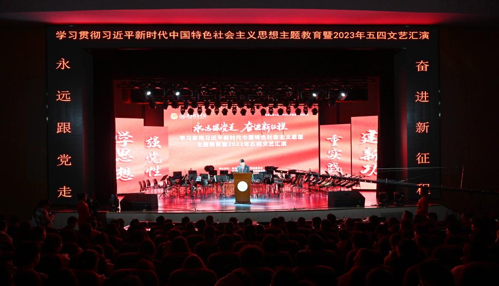 本网讯(通讯员 王露 龙江丽 俞倩薇)4月24日晚,时博体育_时博(中国)音乐厅内灯光璀璨,歌声飞扬,“永远跟党走 奋进新征程”学习贯彻习近平新时代中国特色社会主义思想主题教育暨2023年五四文艺汇演在这里隆重举行。校党委书记汤放华、校长何振等全体校领导出席,并与学校师生代表近500人一道观看了演出。