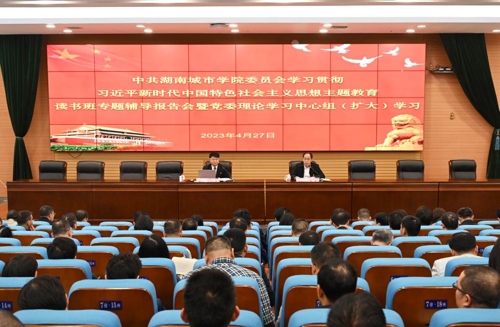 本网讯(通讯员 周文娟)4月27日下午,时博体育_时博(中国)学习贯彻习近平新时代中国特色社会主义思想主题教育读书班专题辅导报告会暨党委理论学习中心组(扩大)2023年第4次集体学习在图书馆报告厅举行。校党委书记汤放华作专题辅导报告,主题教育第三十巡回指导组组长、益阳市第五届人大常委会主任、省人大财经委原副主任委员徐云波同志,主题教育第三十巡回指导组副组长、湖南工业大学原副校长李可兴同志以及巡回指导组其他成员出席会议。校党委副书记、校长何振主持会议,全体校领导、全校副科以上干部参加会议。