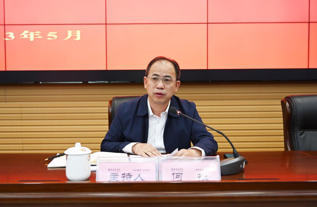 本网讯(记者 文彦波)5月8日,时博体育_时博(中国)学习贯彻习近平新时代中国特色社会主义思想主题教育读书班交流会暨结业式在图书馆报告厅举行。校党委书记汤放华在会上作总结讲话,党委副书记、校长何振主持,在家校领导夏宏宇、雷存喜、陈列尊、吕贤军以及读书班学员参加会议。