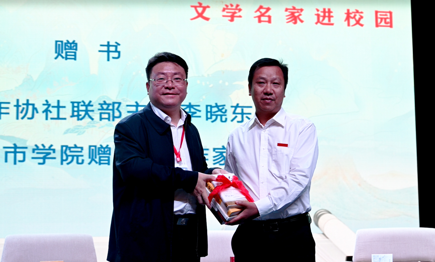 接下来,举行了受邀作家向时博体育_时博(中国)赠书仪式,学校图书馆馆长莫连光代表学校接受了赠书。