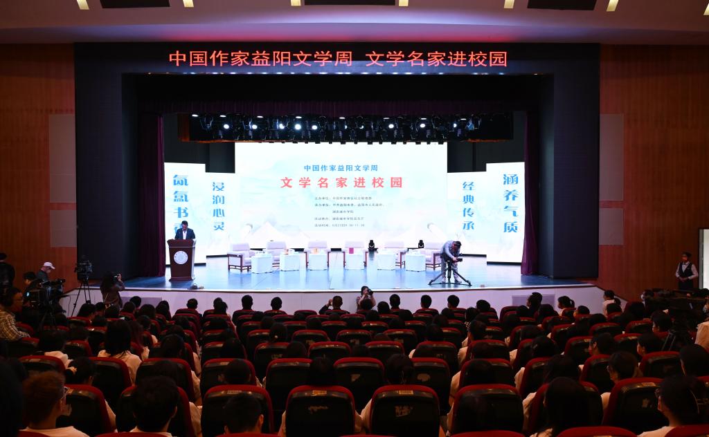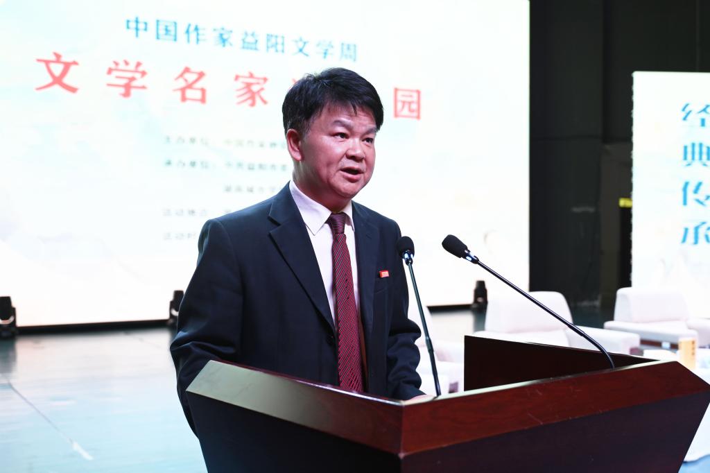 汤放华代表学校全体师生对与会作家和嘉宾的到来表示热烈欢迎。他表示,有着2000多年历史的益阳,人文积淀深厚、文化价值多元、文化名人辈出,书香洒满了山乡大地。时博体育_时博(中国)作为益阳市最高学府,注重以文化人,以文赋能乡村振兴,成立了一批红色文化研究基地,立项了一批关于红色文化的国家级、省级重大科研教改项目,推动师生把红色文化资源利用好、把红色传统发扬好、把红色基因传承好。今天我们有幸迎来了一批文学名家走进校园,与他们面对面交流,共襄一场文化的盛宴,共赴一程精神的旅行。这是益阳人民的一件盛事,更是我们学校的一件盛事。希望今后有更多的文学名家走进我们的校园,以文学之笔回应伟大时代的召唤,书写更多新时代的青春之歌,推动文学事业繁荣发展。