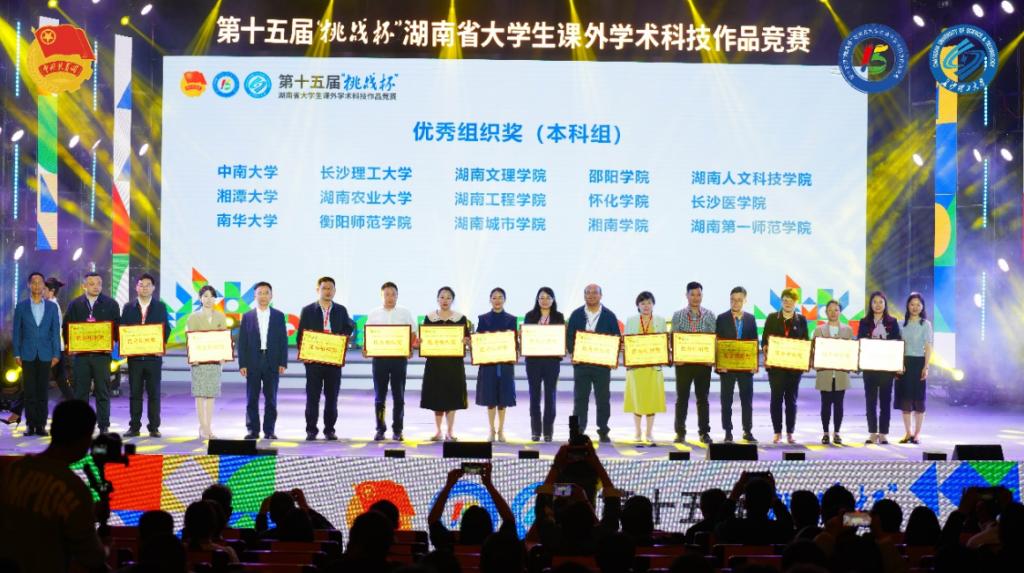 本网讯(通讯员 张根宝 彭鸿运)5月20日至22日,第十五届“挑战杯”湖南省大学生课外学术科技作品竞赛在长沙理工大学举行。经过激烈角逐,我校共荣获一等奖1项,二等奖2项,三等奖6项,并被授予“优秀组织奖”。