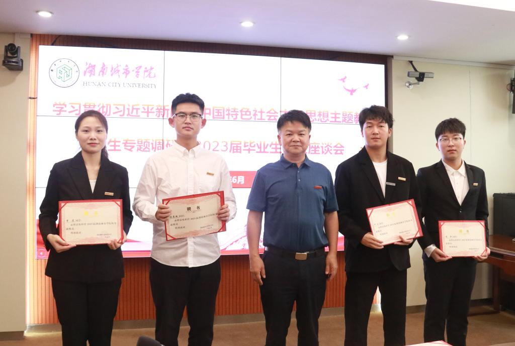 会上,14名毕业生代表踊跃发言。建筑与城市规划学院周伟和管理学院曾晨都是中共党员,学习优异、专业突出,立志支援家乡、服务基层,如今均已顺利进入湖南省选调生考察;市政与测绘工程学院尹湘选择自主创业,在校期间带领团队积极服务全校师生,他坚信新时代新青年一定要艰苦奋斗、勇于创新,并感恩母校对其创业路上的支持和鼓励;土木工程学院蔡存超、美术与设计学院/国际教育学院王硕、机械与电气工程学院杜礼智在中建五局等央企和国企如愿就业,他们一致表示得益于学校“一二三四”应用型人才培养模式及对毕业生就业的良好指导;信息与电子工程学院李希玲考取了湖南临武公务员岗位,她感慨定当不负时代、不负韶华,争做新时代奋勇前进的搏击者;理学院/教师教育学院谭晓玉毕业后即将成为高中数学教师,她感谢学校的培养与老师的关怀,令她有勇气和底气做一名人类灵魂的工程师,担负起塑造新人的时代重任。