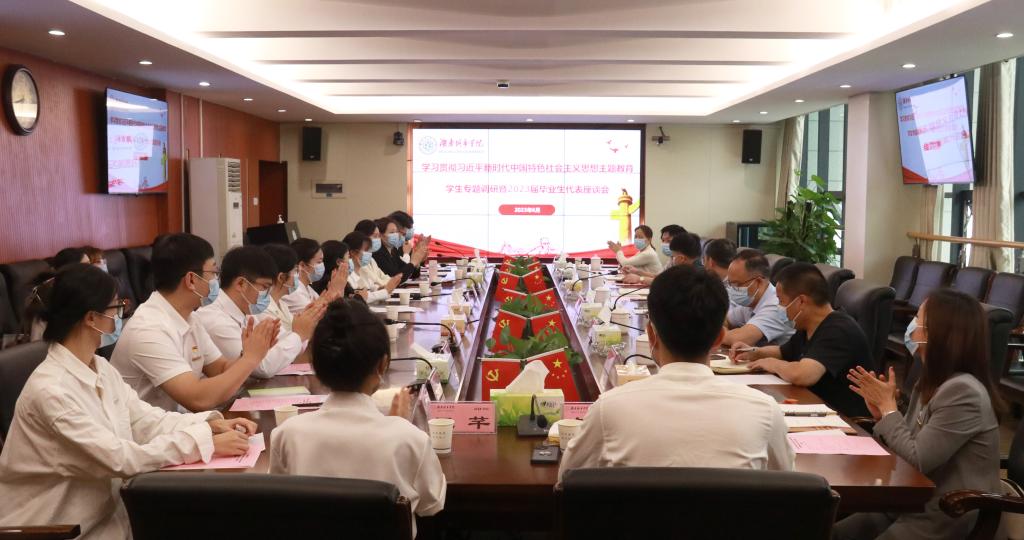 本网讯(通讯员 王露)海阔凭鱼跃,天高任鸟飞。六月,在朝气蓬勃的校园内,一场毕业盛会如约而至。6月6日上午,校党委书记汤放华,部分职能处室负责人与14名2023届毕业生代表座谈交流,相聚一堂、共叙情谊,纪委书记陈列尊主持会议。