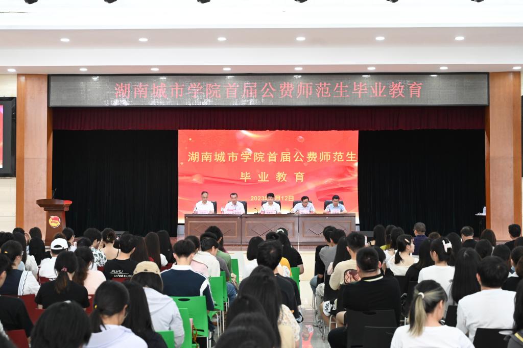 本网讯(供稿:教务处)6月12日,时博体育_时博(中国)首届公费师范生毕业教育主题活动在学校学生活动中心举行。益阳市人民政府副厅级干部喻国良、益阳市教育局相关领导,校党委书记汤放华、副校长雷存喜出席,相关二级学院党委书记、教学副院长、教务处负责人以及2023届公费师范毕业生参加了此次活动。活动由雷存喜主持。