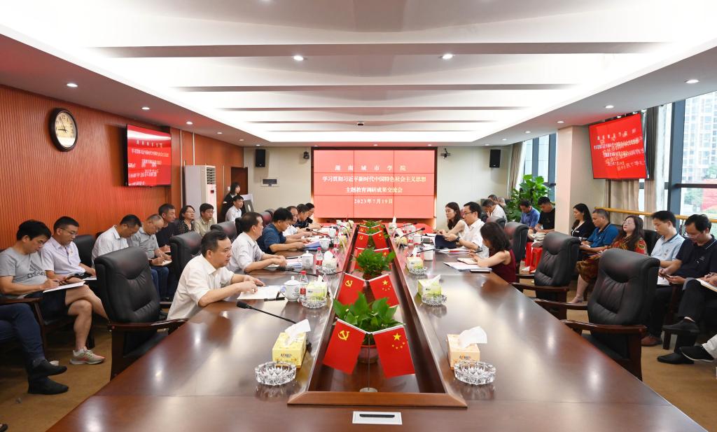 本网讯(记者 文彦波)7月19日上午,我校召开学习贯彻习近平新时代中国特色社会主义思想主题教育调研成果交流会。省委第三十巡回指导组组长徐云波、巡回指导组成员詹玮、杨婧到会指导,全体在家校领导作调研成果交流,二级党组织书记、机关处室负责人参加会议。会议由校党委书记汤放华主持。